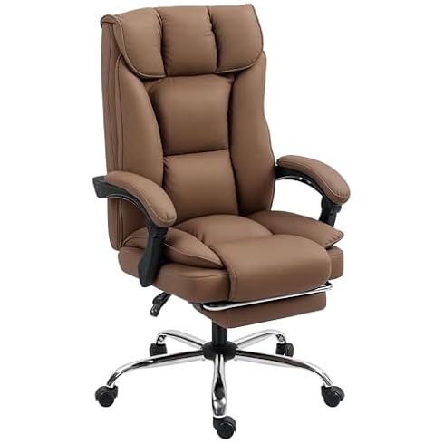 HOMCOM Executive Office Chair with Footrest, Pet-Friendly Faux Leather Computer Desk Chair with Double-Layer Padding, Upholstered Swivel Recliner for Home Office, Working, Brown