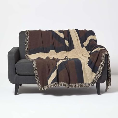 HOMESCAPES Union Jack Flag Throw Blanket, 100% Cotton, Breathable, Handwoven Throws For Sofas Large, United Kingdom Flag Blanket For Bed & Armchair - Limited Edition, 150 x 200cm