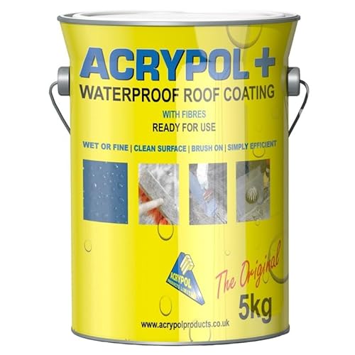 ACRYPOL+ Waterproof Roof Coating with Fibre | All-Weather Acrypol Plus Roof Coating | Grey - 5 KG