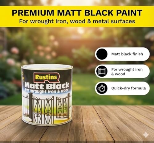 RUSTINS Quick Drying Matt Black Paint 500ml -Easy DIY Application for a Professional Finish in Minutes, Ideal for Interior & Exterior Surfaces