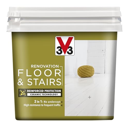 V33 Renovation Floor & Stairs Paint - No Undercoat Needed - Wooden Floors Laminates & Tiled Floors - Reinforced Protection - Easy Maintenance - Feather Satin 2 Litres