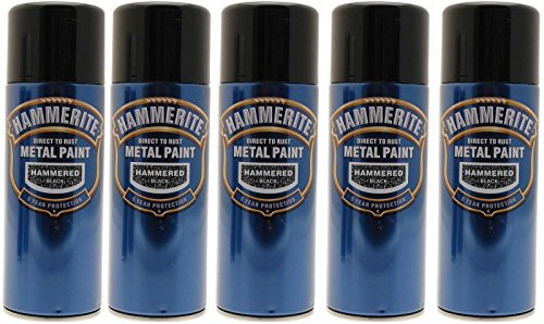 5x Hammerite Hammered Black Metal Spray Paint 400ml Aerosol Tins x5