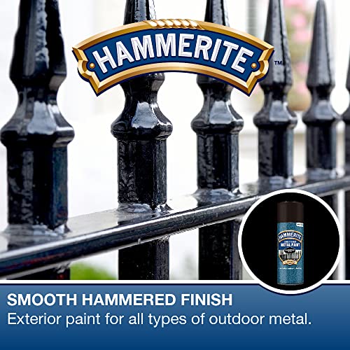 Hammerite Spray Paint for Metal. Direct to Rust Exterior Black Metal Paint, Smooth Finish. Corrosion Resistant Black Gloss Paint and Rust Remover, 8 Year Protection - 400ml Aerosol 0.5 SqM Coverage