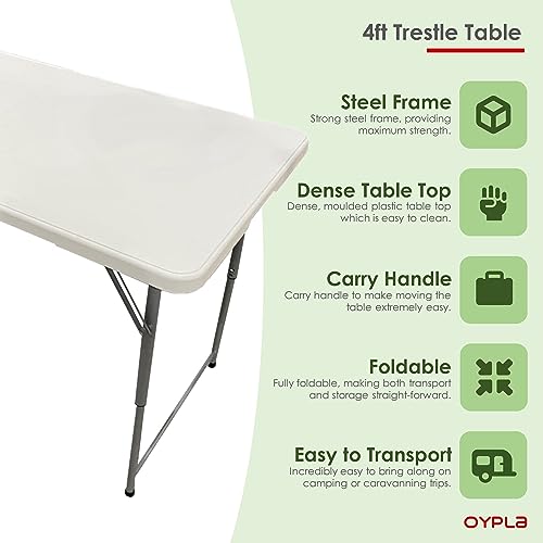 Oypla 4ft 1.2m Folding Heavy Duty Outdoor Trestle Party Garden Table