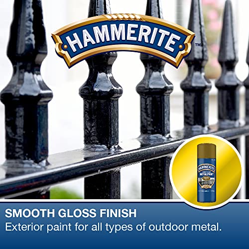 Hammerite Spray Paint for Metal. Direct to Rust Exterior Gold Metal Paint, Smooth Finish. Corrosion Resistant Gold Gloss Paint and Rust Remover, 8 Year Protection - 400ml Aerosol 0.5 SqM Coverage