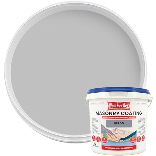 Kingfisher Weatherflex Masonry Paint 5L | Waterproof & Non-Toxic Outdoor Paint for Brick, Stone, Concrete and More | Ultra-Flexible, Crack Resistant & Breathable for Extreme Weather | Heron