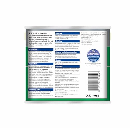 RUSTINS Quick Dry Varnish, Clear Matt, 2.5 Litre -Fast-Drying Water-Based Wood Varnish; Durable Non-Yellowing Finish in Gloss, Satin or Matt for Indoor Use
