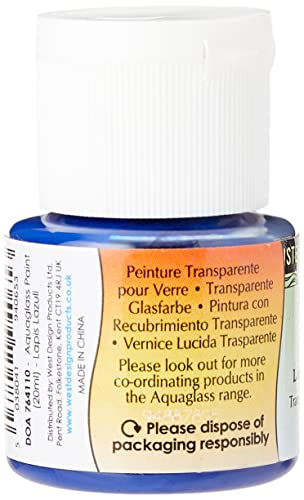 Artiste Aquaglass Lapis Lazuli 20ml, Water Based Paints, For Painting On Glass, Perspex, Acetate, Gentle Translucent Finish, Wipe Clean When Wet, Water Proof Once Dry, Glass Crafting