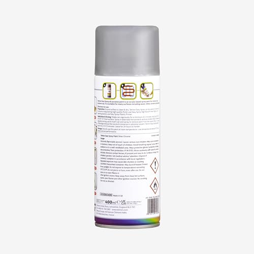 Tetrion High Visibility Glossy Silver Chrome Spray Paint 400ml for Wood, Metal, Ceramic & Plastic Quick-Dry Durable Exterior & Interior Use