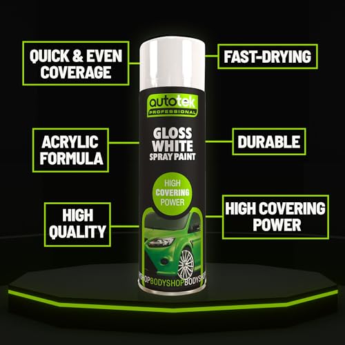 Autotek Professional High Covering Power Spray Paint, Gloss White, 500 ml