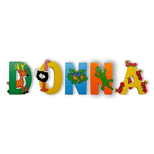 Vinsani® WOODEN JUNGLE ANIMAL ALPHABET LETTERS PERSONALISED BEDROOM WALL DOOR NAME (D)