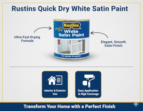 Rustins Quick Dry White Satin Paint – Water-Based, Low Odour Paint for Wood & Metal Surfaces – Quick Drying, Hard-Wearing Satin Finish – 250ml, 500ml & 1L