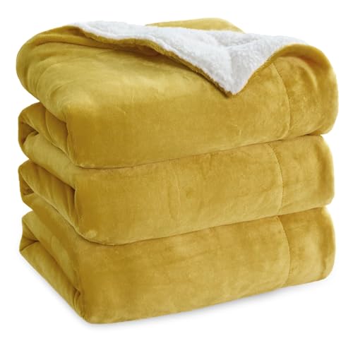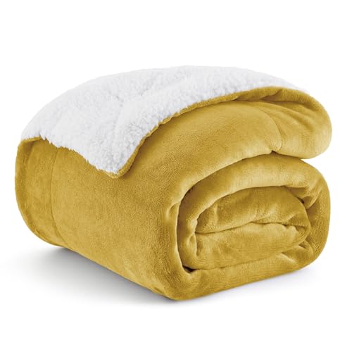 Bedsure Sherpa Fleece Throw Blanket - Thick and Warm, Fluffy Microfiber Solid & Soft Blankets for Bed and Couch Double/Twin Size, Camel, 150x200cm