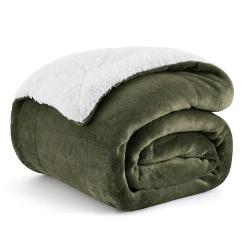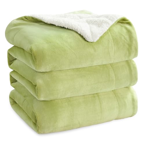 Bedsure Sherpa Fleece Throw Blanket - Fluffy Microfiber Solid Blankets for Bed and Couch Double/Twin Size, Sage Green, 150x200cm
