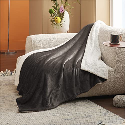 Bedsure Sherpa Fleece Throw Blanket - Thick and Warm, Fluffy Microfiber Solid & Soft Blankets for Bed and Couch Double/Twin Size, Dark Grey, 150x200cm