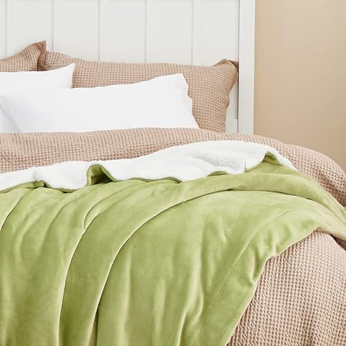 Bedsure Sherpa Fleece Throw Blanket - Fluffy Microfiber Solid Blankets for Bed and Couch Double/Twin Size, Sage Green, 150x200cm