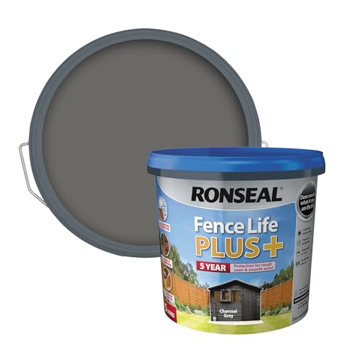 Ronseal Fence Life Plus+ Charcoal Grey 5L, 5 Year Long Lasting Protecion, All Weather Protection, Sticks to Damp Wood, Brush or Spray on, For all Sheds and Fences also Showerproof in 1 Hour