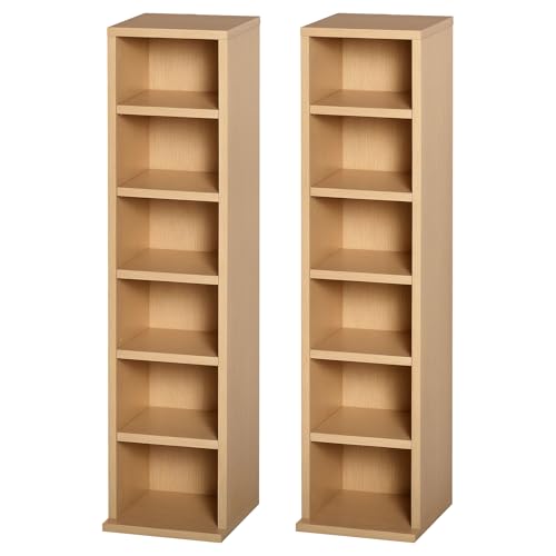 HOMCOM 204 CD Media Display Shelf Unit Set of 2 Blu-Ray Tower Rack w/Adjustable Shelves Bookcase Storage Organiser, Natural Wood Colour