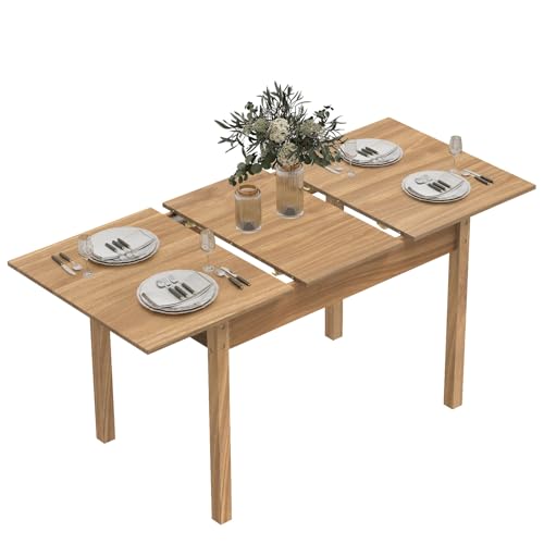 ARTETHYS Dining Table, 110-150cm Wood Extendable Table for 4-6 People, Large Kitchen Dinner Table with Solid Legs for Restaurant, Home