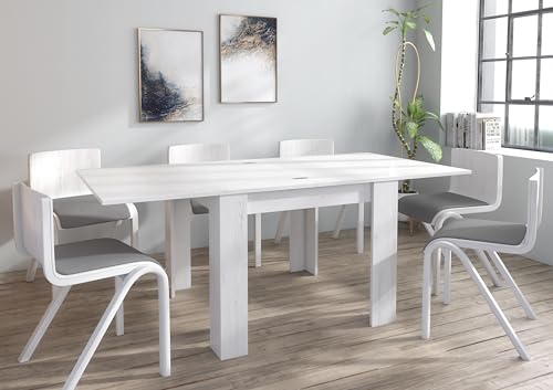 Furneo Golden 02 – Modern Extendable Dining Table Only, 90–180 cm, White Pine Effect Finish