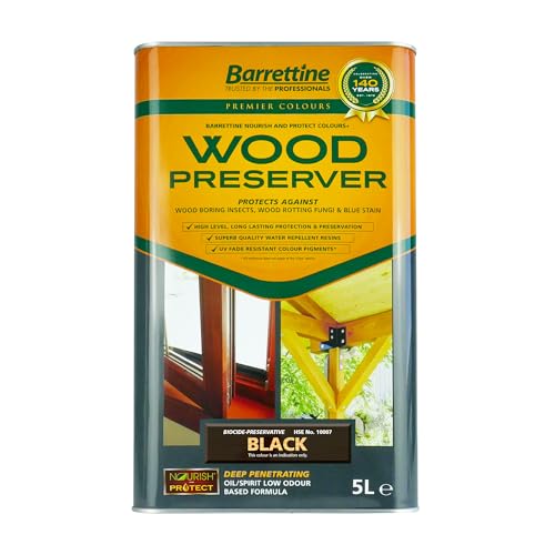 Barrettine Wood Preserver (Black, 5L) - UV Fade Resistant, Durable & Water Repellent Premier Wood Preserver, Deep Penetrating, Low Odour & Oil Based, Suitable for Outdoor & Indoor Use