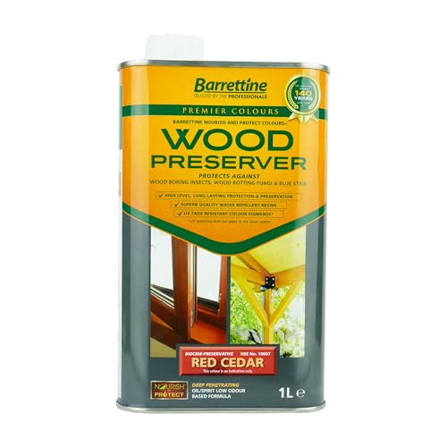 Barrettine Wood Preserver (Cedar Red, 1L) - UV Fade Resistant, Durable & Water Repellent Premier Wood Preserver, Deep Penetrating, Low Odour & Oil Based, Suitable for Outdoor & Indoor Use