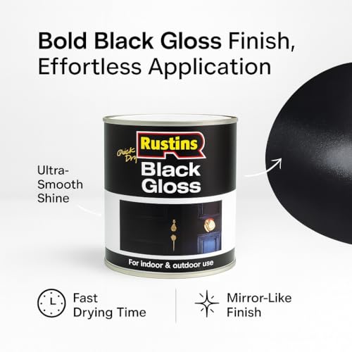 RUSTINS Quick Dry Black Gloss Paint 500ml –Fast-Drying Water-Based Caoting for Wood and Metal; Durable Hard-Wearing Finish with Smooth Gloss Shine; Low Odour Sustainable Paint for Home and Trade Use