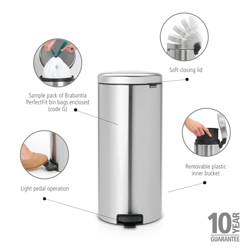 Brabantia 111822 Pedal Bin newIcon with Plastic Inner Bucket, 30 Litre - Matt Steel Fingerprint Proof