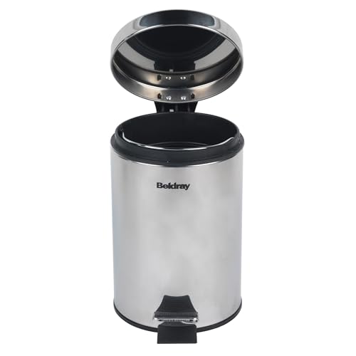 Beldray LA038098SS Bathroom Pedal Bin – Small Round Stainless Steel Sanitary Waste Bin For Bedroom, Office, Kitchen, Toilet, Soft Close Rubbish Bin, Removable 3L Inner Bucket, Carry Handle