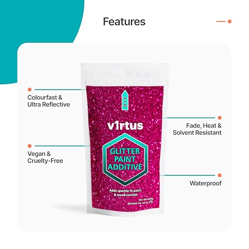 v1rtus Glitter Paint Additive - Rose Pink | 100g Metallic Flakes for Adding Sparkle to Paints & Wood Varnish | Add to Emulsion, Acrylic & Latex for Indoor Sparkly Walls