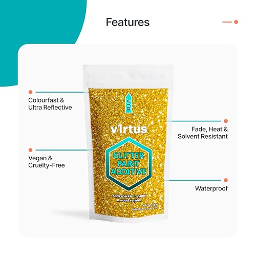 v1rtus Glitter Paint Additive - Gold | 100g Metallic Flakes for Adding Sparkle to Paints & Wood Varnish | Add to Emulsion, Acrylic & Latex for Indoor Sparkly Walls