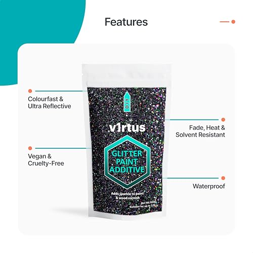 v1rtus Glitter Paint Additive - Turquoise Blue | 100g Metallic Flakes for Adding Sparkle to Paints & Wood Varnish | Add to Emulsion, Acrylic & Latex for Indoor Sparkly Walls