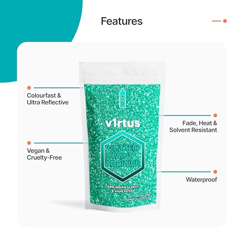v1rtus Glitter Paint Additive - Turquoise Blue | 100g Metallic Flakes for Adding Sparkle to Paints & Wood Varnish | Add to Emulsion, Acrylic & Latex for Indoor Sparkly Walls