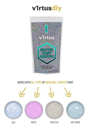 v1rtus Silver Glitter Paint Additive NEW 2019 - Mix with Any Water based Emulsion Paint for Perfect Luminous Paint Finish on Interior or Exterior Wall - 100g