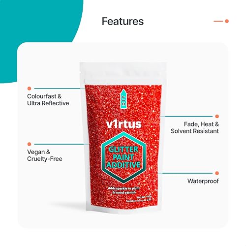 v1rtus Glitter Paint Additive - Red | 100g Metallic Flakes for Adding Sparkle to Paints & Wood Varnish | Add to Emulsion, Acrylic & Latex for Indoor Sparkly Walls