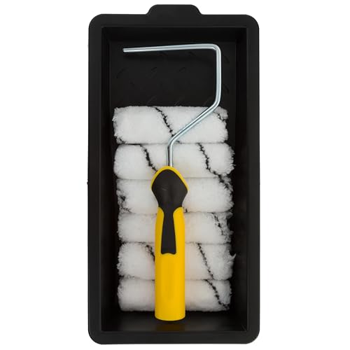 Coral 43400 Easy Coater Paint Mini Roller Kit with Microfibre Covers for Emulsion 4 inch 8 Piece Pack Set