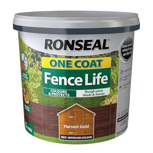 Ronseal RSLOCFLHG5L One Coat Fence Life, Harvest Gold, 5 Litre