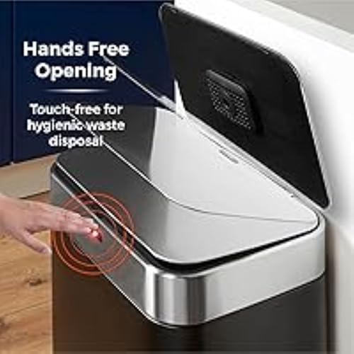 Tower T838001B Square Sensor Bin with Fingerprint Proof Coated Exterior, Large 75L, Hands Free Opening, Black