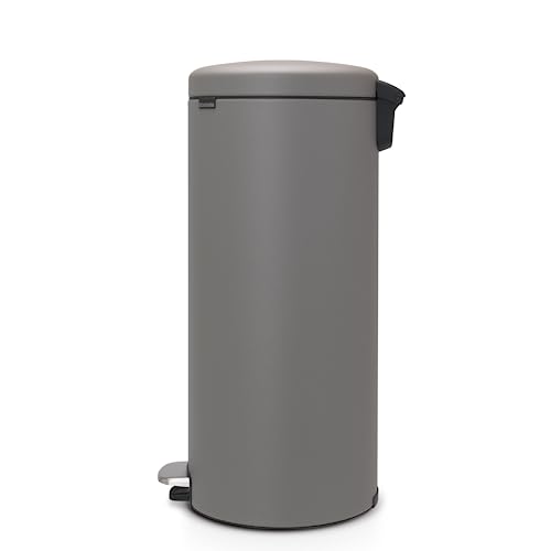 Brabantia NewIcon Pedal Bin 30 L (Mineral Concrete Grey) Soft-Closure Kitchen Rubbish Bin with Removable Inner Bucket + Free Bin Bags