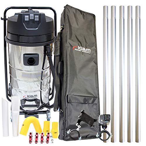 Equip2clean KV100-3 3600W Triple Motor Wet and Dry Industrial Gutter Vacuum Cleaner System, Corded Vacuum Cleaner with 4K WiFi Inspection Camera, Holdall Carry Bag, & Gutter Pole Kit (36ft)