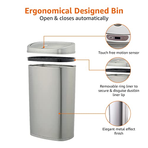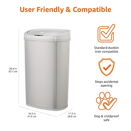 Amazon Basics Stainless Steel Rectangular Dustbin with Hands-Free Motion Sensor, 50 l, Silver
