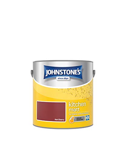 Johnstone's - Kitchen Paint - Hot Cherry - Matt Finish - Grease & Stain Resistant - Suitable for Kitchen Walls & Ceilings - Highly Durable - Low Odour - 12m2 Coverage per Litre - 2.5L