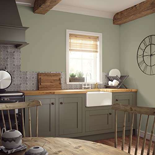 Johnstone's- Kitchen Paint- Natural Sage- Matt Finish - Grease & Stain Resistant- Suitable for Kitchen Walls & Ceilings- Highly Durable - Low Odour- 12m2 Coverage per Litre - 2.5L - Packaging May Vary