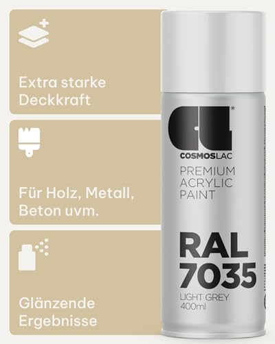 Cosmos LAC Acrylic Paint Spray Can in Many RAL Colours, 400 ml Spray Can Perfect for DIY, Upcycling and Other Painting Work RAL 7035 LIGHT GREY N319
