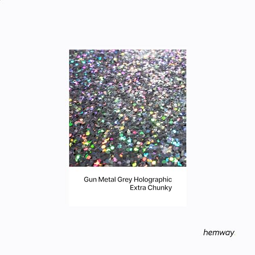 Hemway Glitter Paint Additive - Gun Metal Grey Holographic | Extra Chunky Flakes for Adding Sparkle to Paints & Wood Varnish | Add to Emulsion, Acrylic & Latex for Indoor Sparkly Walls | 100 g