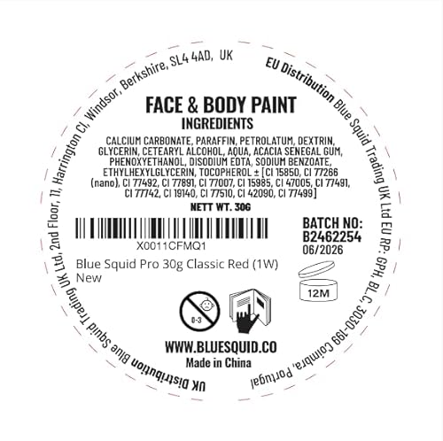 Blue Squid PRO Face Paint - Professional Water Based Single Cake Facepaint & Body Paints - SFX Makeup, Kids Adults Painting for Costume, Halloween Face Paints for Children - Classic Red 30g / 1oz