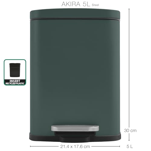 Spirella Akira Cosmetic Bin, 5 Litres, Stainless Steel with Soft Close Mechanism and Inner Bucket, Dark Green