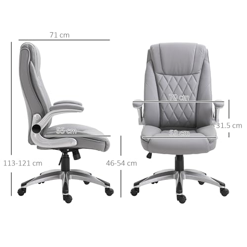 Vinsetto Executive Office Chair with Arms, PU Leather Ergonomic Office Chair with Tilt Function and Adjustable Height, Swivel Rolling for Home Office Working, Grey