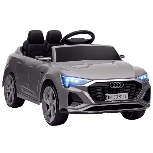 AIYAPLAY Audi Q8 E-tron Licensed Electric Car for Kids, 12V Electric Ride on Sportback Design with Remote Control, 4 Suspension Wheels, LED Headlamps, Music, Horn, for Ages 3-4 - Grey