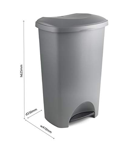 Addis Eco Made from 100% Plastic Family Kitchen Pedal Bin, 50 Litre, Light Grey Recycled